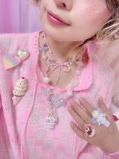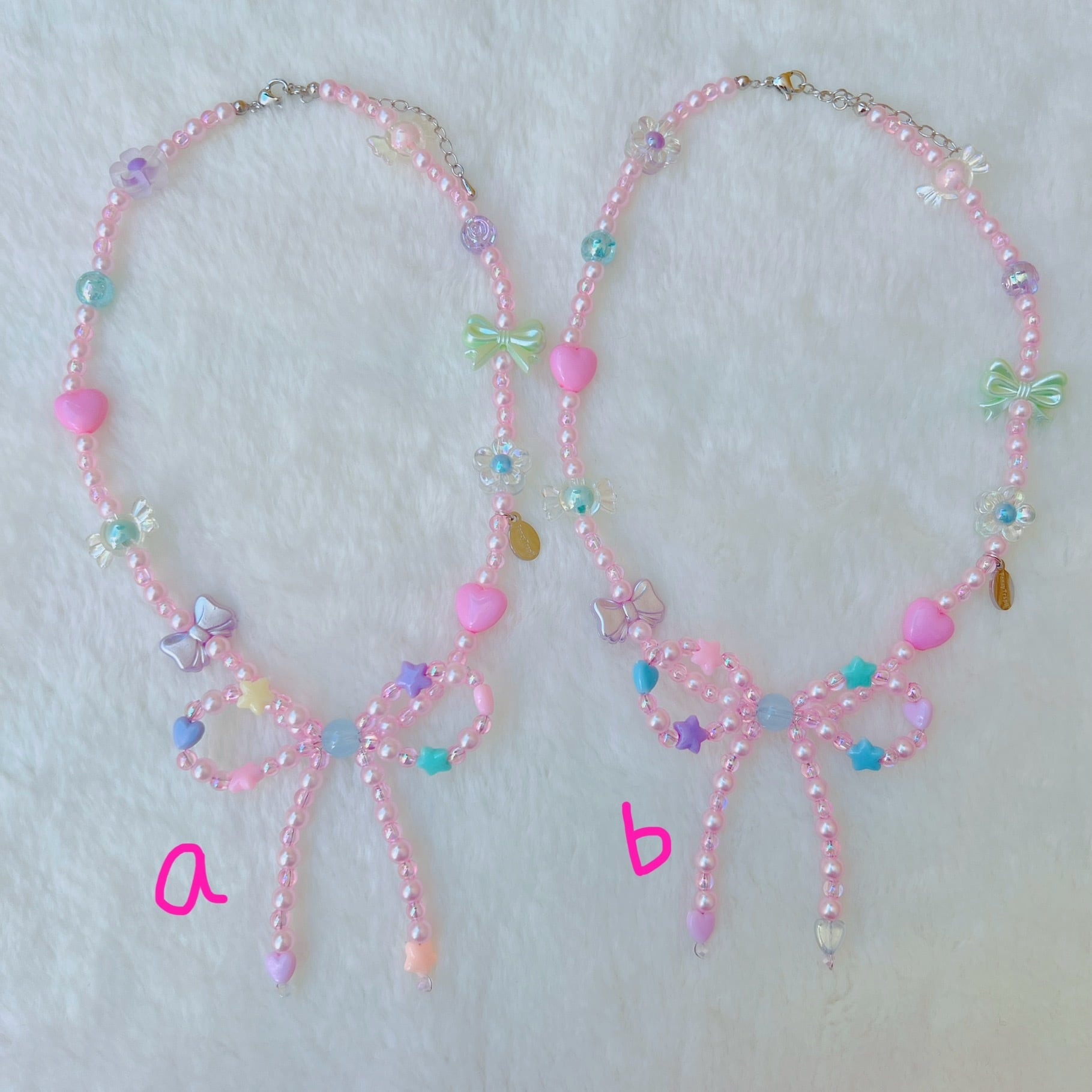 小さなパールビーズに星のハートを散りばめたリボンチョーカー☆