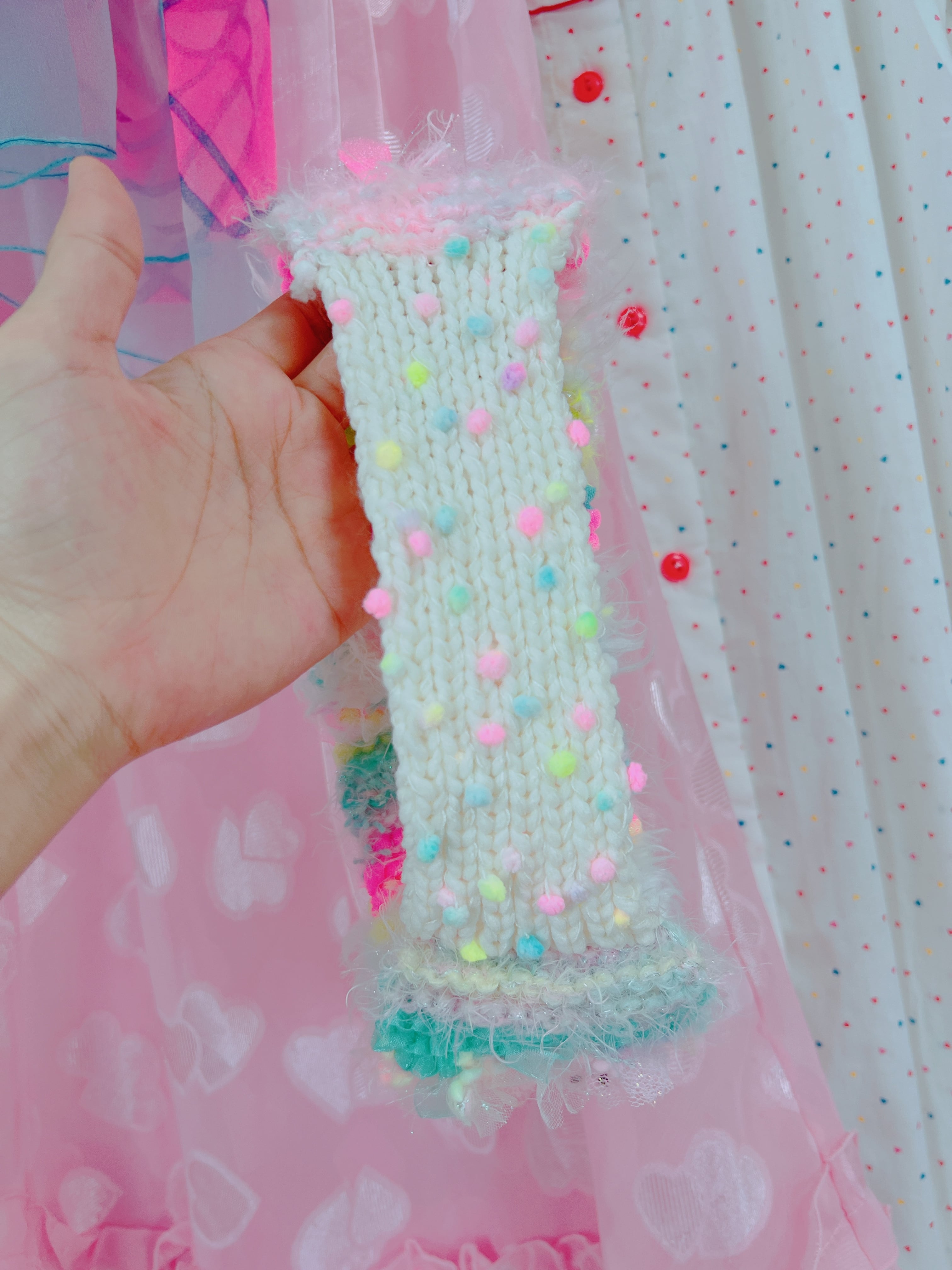 ファンシーな"ふわふわ"や"キラキラ"をたくさん詰め込んだニットヘアバンド。