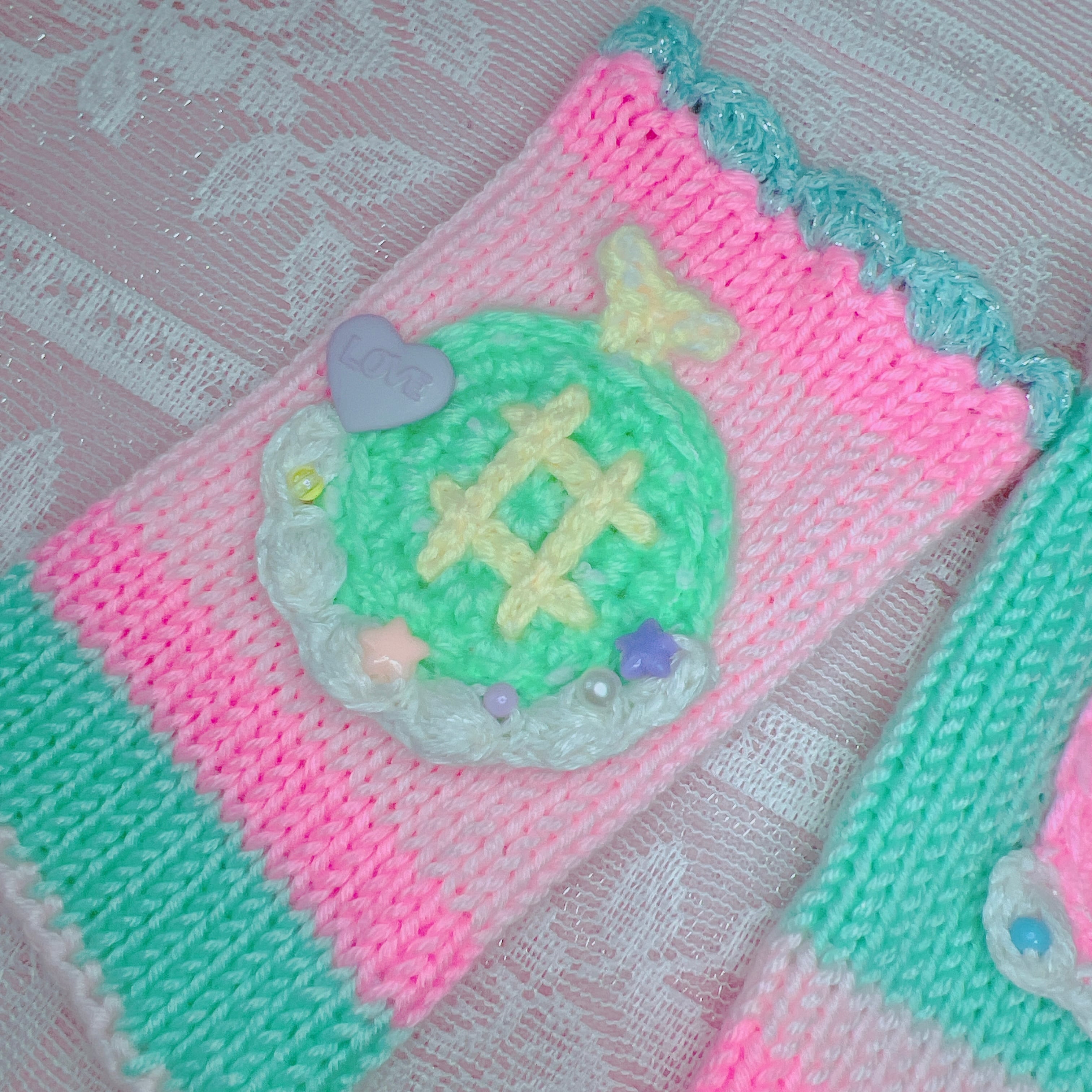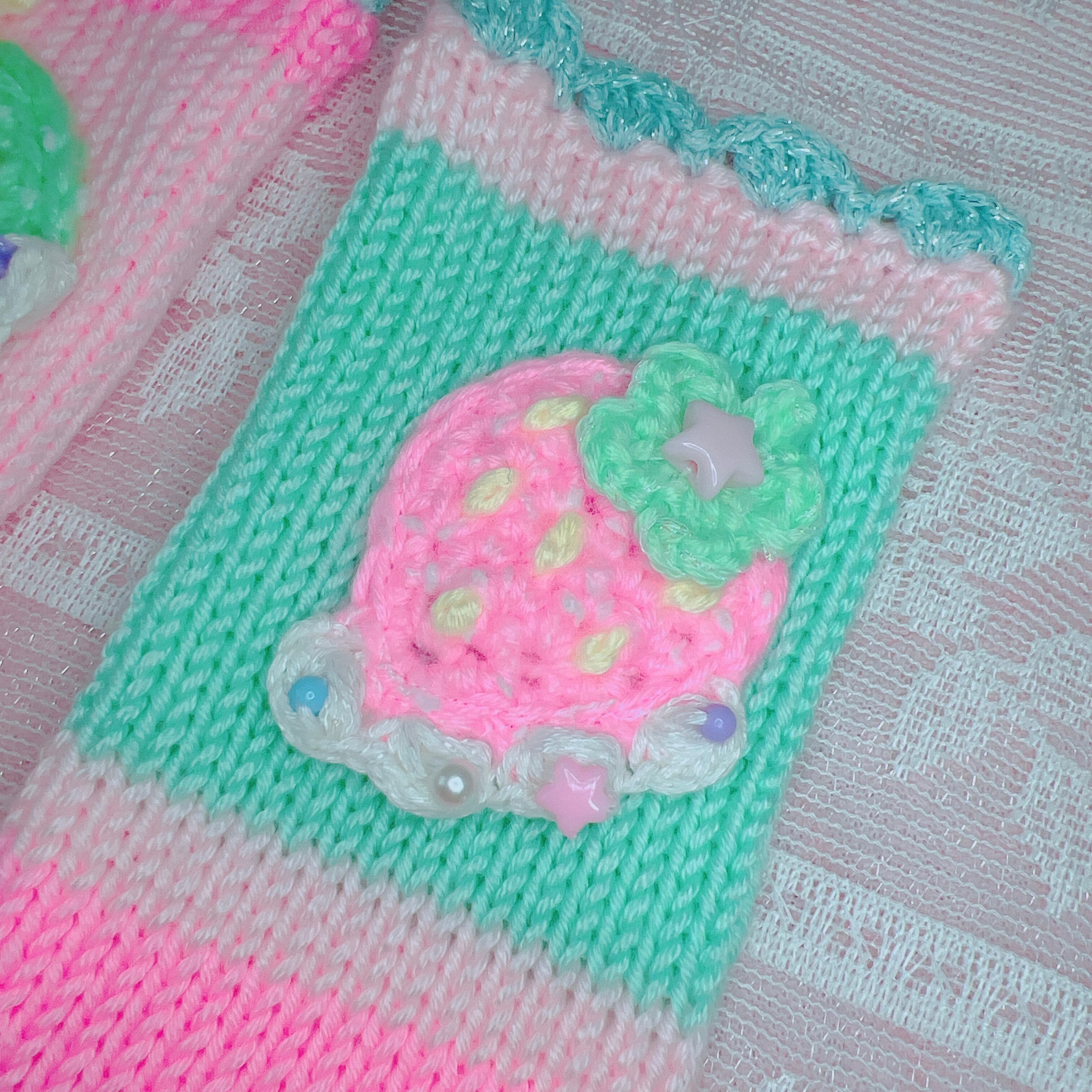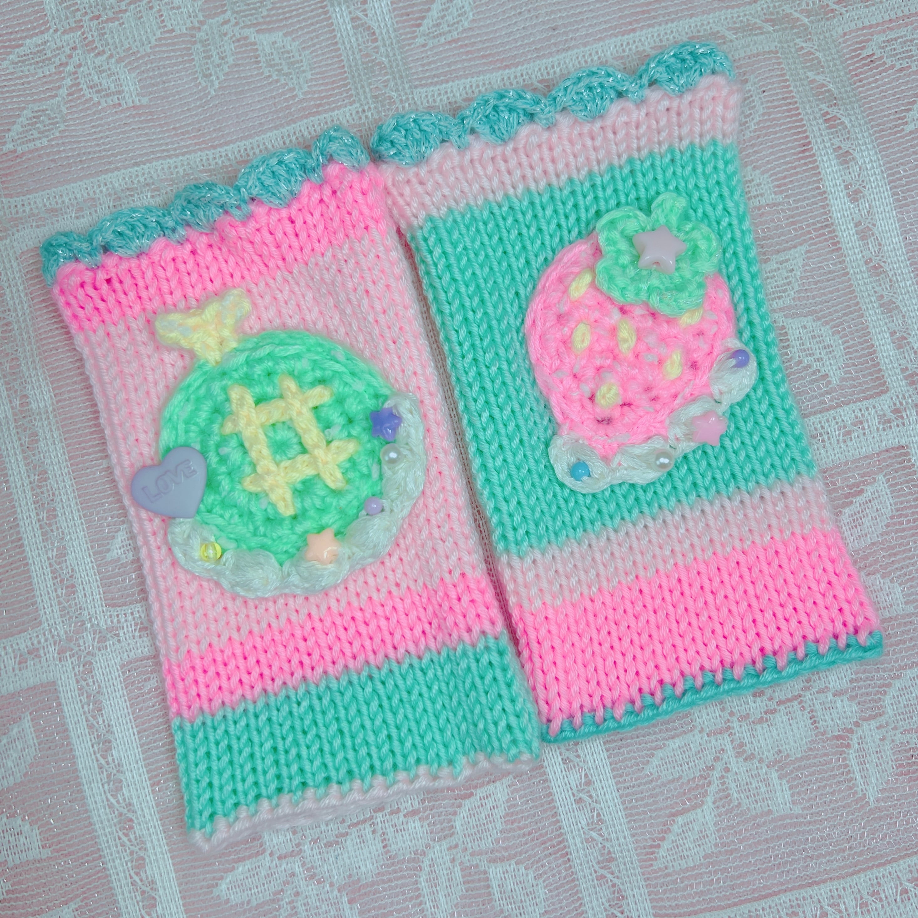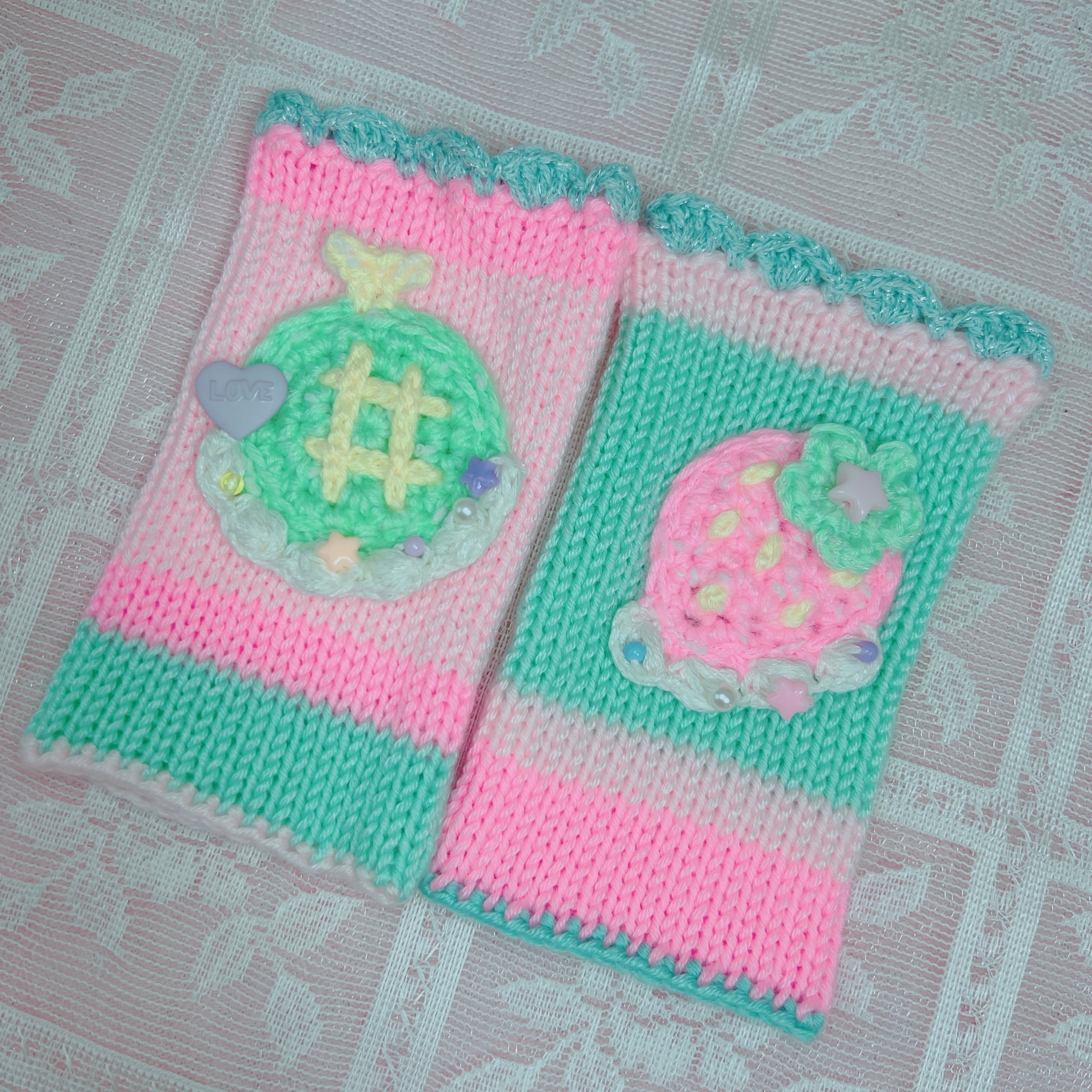 メロンといちごのキュートなモチーフをのせたハンドウォーマーです♪